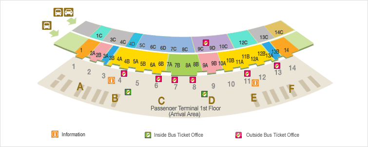 Limousine buses run from 6:15 am to 10:35 pm around every 45 minutes. It costs £Ü10,000 (around US $9.00). You can purchase tickets at the designated counters indicated above. You can pay by either credit card or cash. Only Korean won is acceptable (current exchange rate : £Ü1,100 / USD, as of November 2011).